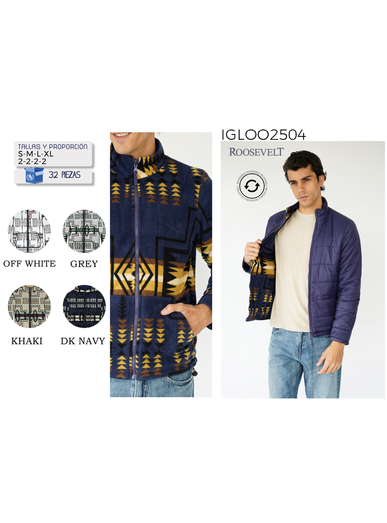 Chamarra IGLOO-LE2504 doble vista ideal para el frío. Perfecta para mantenerte abrigado y a la moda en cualquier ocasión.